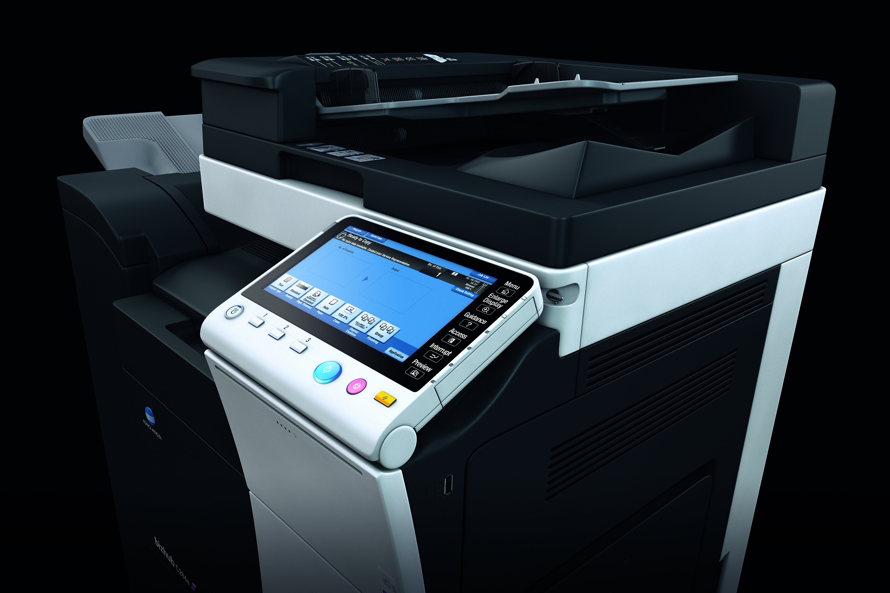 - Automatyczny podajnik dokumentów: Do 100 oryginałów; A6-A3; 35-163 g/m², dostępne podajniki RADF lub Dualscan ADF